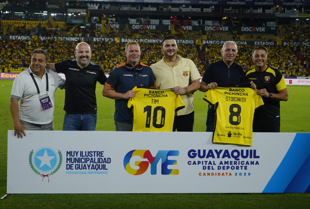 Un momento único se vivió este sábado en el Estadio Monumental. Hristo Stoichkov, ganador de Balón de Oro, y Tim Ballard, líder mundial en la lucha contra la trata de niños, se hicieron presentes para recibir el cariño del público guayaquileño y presenciar el duelo entre Barcelona e Independiente del Valle. Esta visita ilustre coincide con la postulación de la ciudad de Guayaquil como candidata a Capital Americana del Deporte 2026, una designación que podría resultar histórica para el país y la región, un honor digno de una de las urbes de mayor crecimiento e influencia del Ecuador. LigaPro, comprometida con exponer nuestro fútbol a las más altas esferas, sigue vinculando nuestra industria con el mundo. Estas visitas no solo enaltecen, sino que nos indican que se sigue trabajando en la senda correcta, la senda del trabajo y la trascendencia.