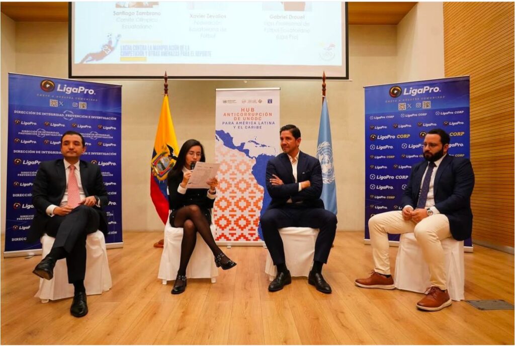 UNODC y Ecuador presentaron su nuevo Plan de Compromiso y asistencia técnica. Este compromiso abarca nueve áreas prioritarias, incluyendo la lucha contra la corrupción, rubro en el cual Naciones Unidas destacó el taller «Salvaguardando el deporte en Ecuador» en colaboración con LigaPro, realizado el 14 y 15 de enero de 2025. Más de 30 representantes de federaciones, instituciones públicas y expertos internacionales se reunieron para fortalecer la integridad del fútbol ecuatoriano. ¡Un gran paso hacia un deporte más transparente! IntegridadDeportiva #LigaPro #DeporteEcuador #UNODC #FútbolConValores